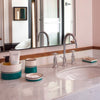 The ceramic line dedicated to the bathroom incorporates the signature stripes of the maison bringing colour and elegance. Hand made by a women association in Morocco.