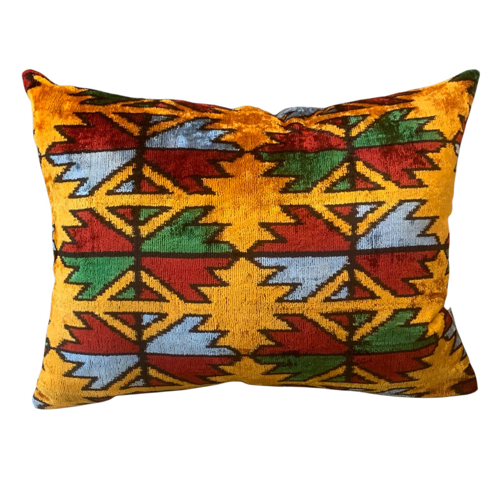These silk velvet cushions blend East and West and will add personality to any room.  They are produced using traditional dying & weaving techniques in Turkey with Ottoman inspired patterns.  Variations in color and pattern placement can be expected, this is the beauty of this product.   Silk velvet front, natural colour cotton back.