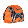 A little velvet bag with the house ocelot.  It's a cosmetic bag or little clutch.  Italian Velvet.  Tuscan Leather.  Made by hand in Florence.   Available in two sizes.